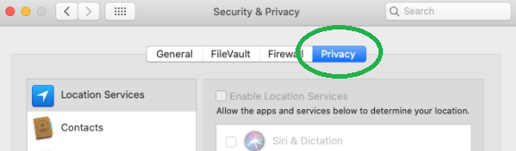 3. Select the Privacy tab