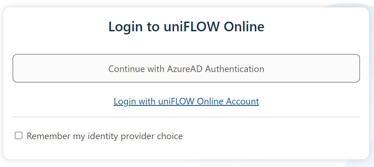 11. If prompted to sign into the uniFLOW online smart client, click the "Connect with AzureAD Authentication" and enter in your campus email address and password