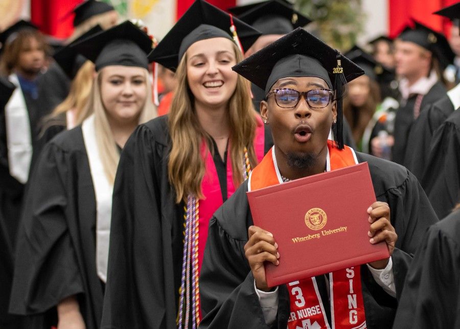 “Class of 2023, if you didn’t fully understand it before, the COVID-19 pandemic and its effects on 2020, 2021, 2022, and still now, are a clear reminder that life is not a straight line,” he continued. “Your life will take you forward, sideways, backward, and up the hill and down. You will prepare for this, only to have that happen. You will pivot, then pivot again. The good news – through your education and experience, you are ready for almost anything that comes your way. You’ve shown that you can persevere, move ahead, and achieve success. You’ve set yourselves on a path of perpetual learning, growth, and change. Another part of your readiness is the support of others. In addition to the faculty, you’ve had support from your families, your friends, staff and coaches at Wittenberg, and many others. Thank them, with applause now, but also with a written or spoken word. Reciprocate. Provide support to others and be a model of passing on your light.”