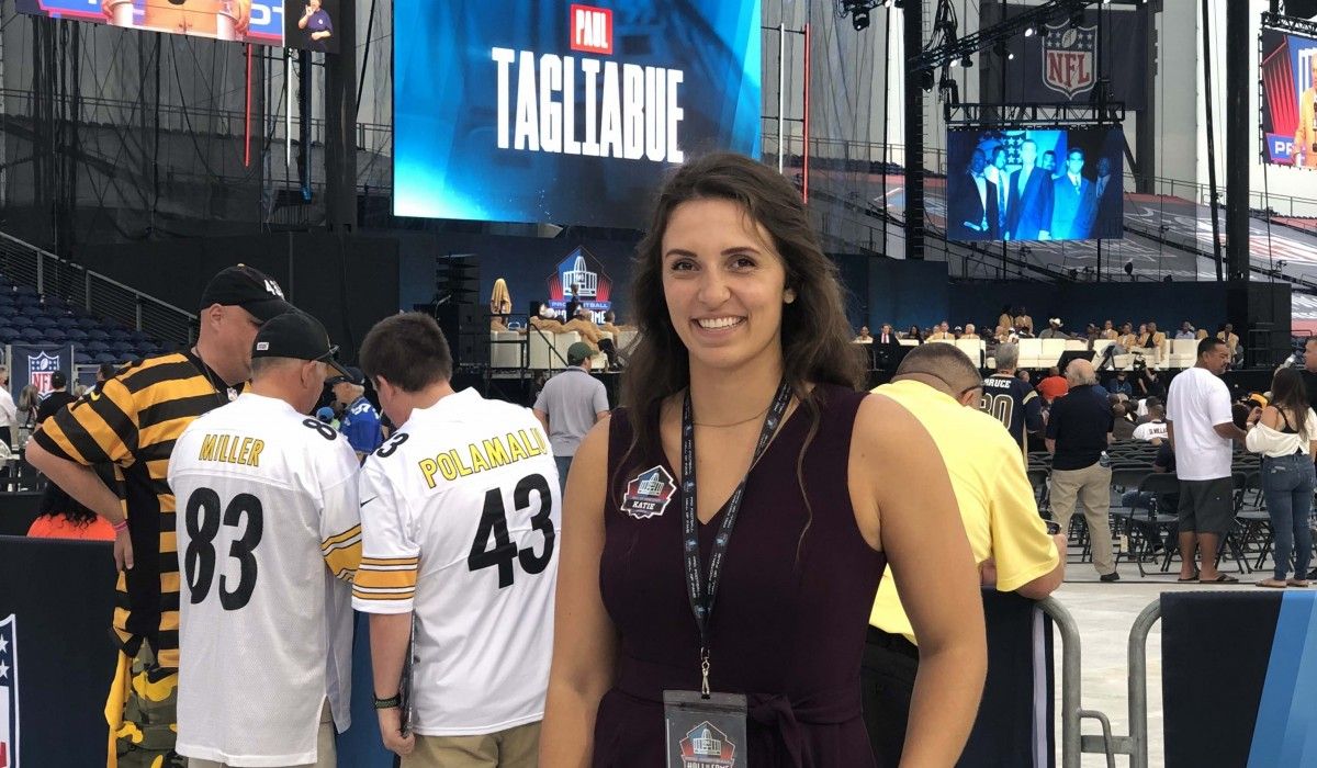 Through her summer job at the Pro Football Hall of Fame, Katie Hiestand ’22 played an important behind-the-scenes role in Enshrinement Week 2021 and had an “unforgettable” experience as she helped arrange the itineraries for inductees Peyton Manning, John Lynch, and Troy Polamalu, her favorite pro football player.