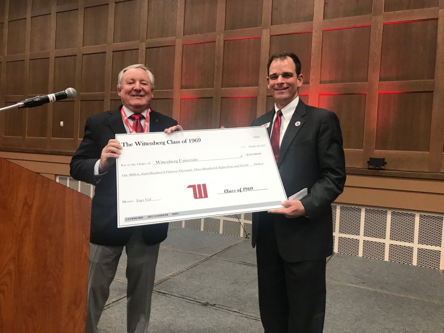 During the 50th Reunion celebration of the Class of 1969, David Baines, a member of the Board of Directors and proud 1969 alumnus, presented the class’ check for more than $1.8 million to support future generations at their alma mater.