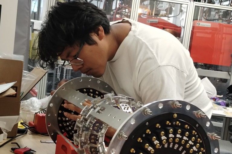 “They are searching for Charge Conjugation Parity Violation in Positronium Decay, which would help us understand the matter and antimatter asymmetry in the universe,” he said. “In the beginning of the universe, equal amounts of matter and antimatter were created. Matter and antimatter annihilate each other whenever they come together. But now we have more matter than antimatter, so there must be a process that leaves us with more matter than anti-matter. So, we're looking at positronium annihilation as one of those processes that would result in the matter and antimatter asymmetry. Positronium is an electron and its antiparticle (the positron) bind together. My contribution to the research includes testing detectors that would measure the energy from the annihilations; simulation of detector signals to find optimal parameters for signal processing method; the design and building of a power and signal feedthrough to the detectors in a superconducting magnet; design, building, and testing of possible light transmission systems to bring light out, and the simulation of decays in the experimental apparatus.”