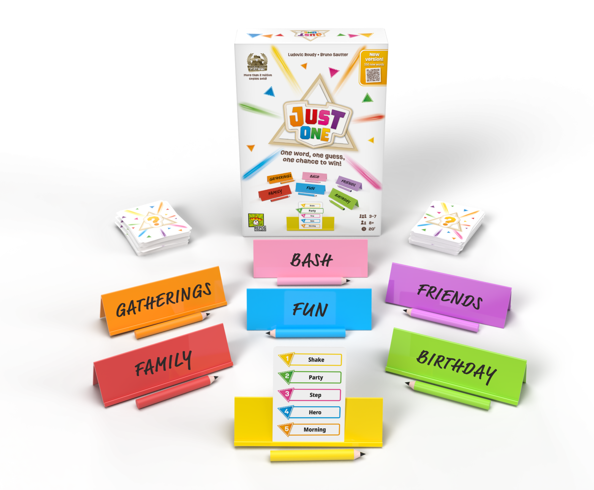 Just One is a co-operative party game in which you all play together to get the best score! Your goal each round is to get one player — the active player — to guess a mystery word based on the clues given by teammates. Can you achieve a perfect score by guessing all the mystery words?